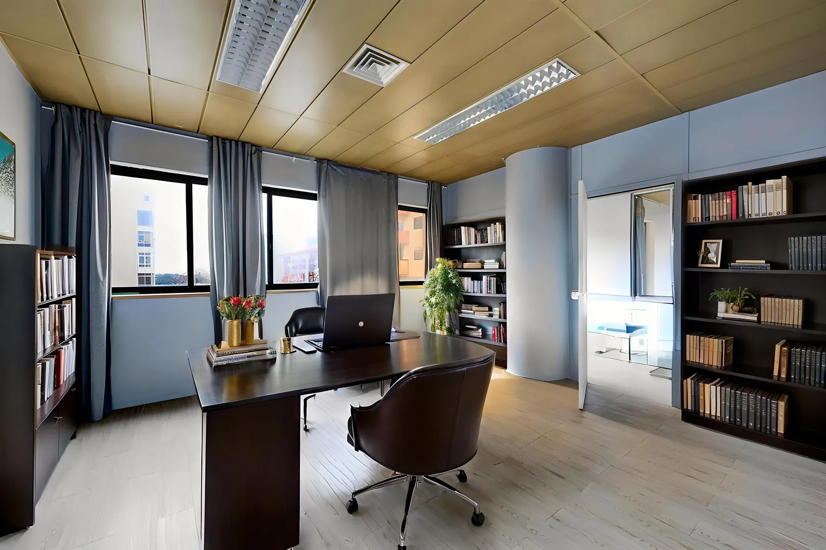 Dois gabinetes dispõem de varanda, garantindo maior luminosidade e conforto.